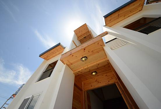 這個簡單的家,由傳統老房子斜屋頂切兩半、交錯、疊起來的白色三明治,